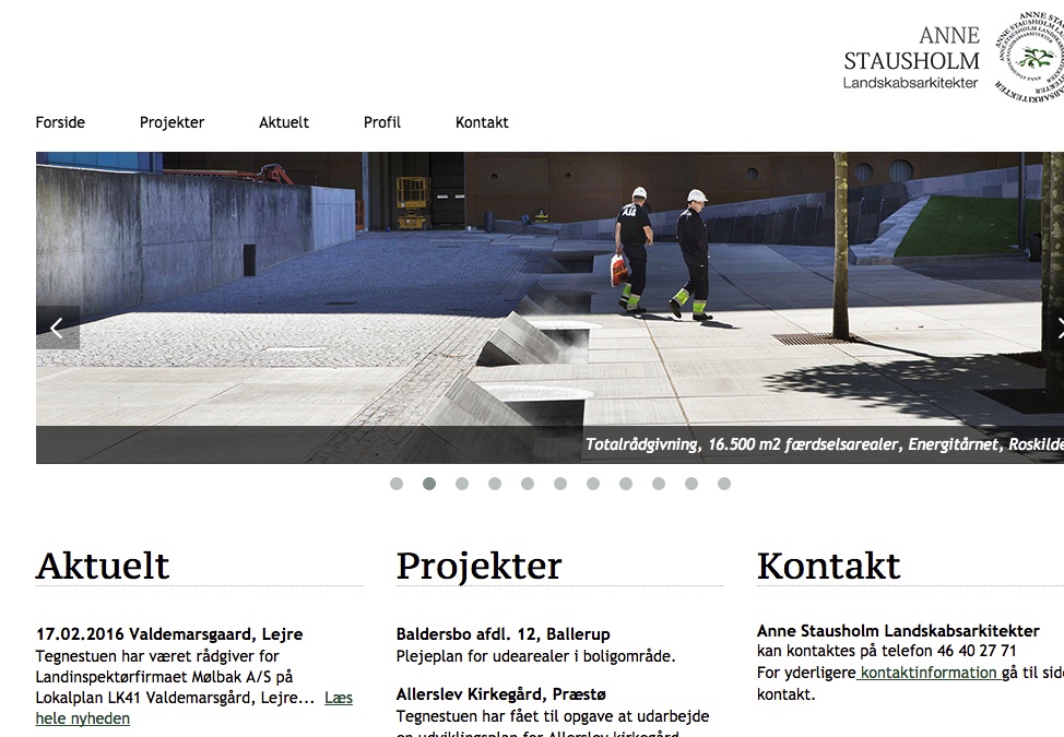 Kort om siden/virksomheden Annestausholm.dk er et arkitektfirma som tilbyder et bredt spektrum af landskabsarkitektarbejde, og deres arbejdsområder er b.la. indenfor nogle af følgende faggrupper: Strukturering af områder, heriblandt helhedsplanlægning og udviklingsplaner Anlægningsopgaver, store som små Renovering og nyanlæg Konsulentbistand samt rådgivning Mm…. Hvis man tager et kig på Anne Stausholm Landskabsarkitekters porto...