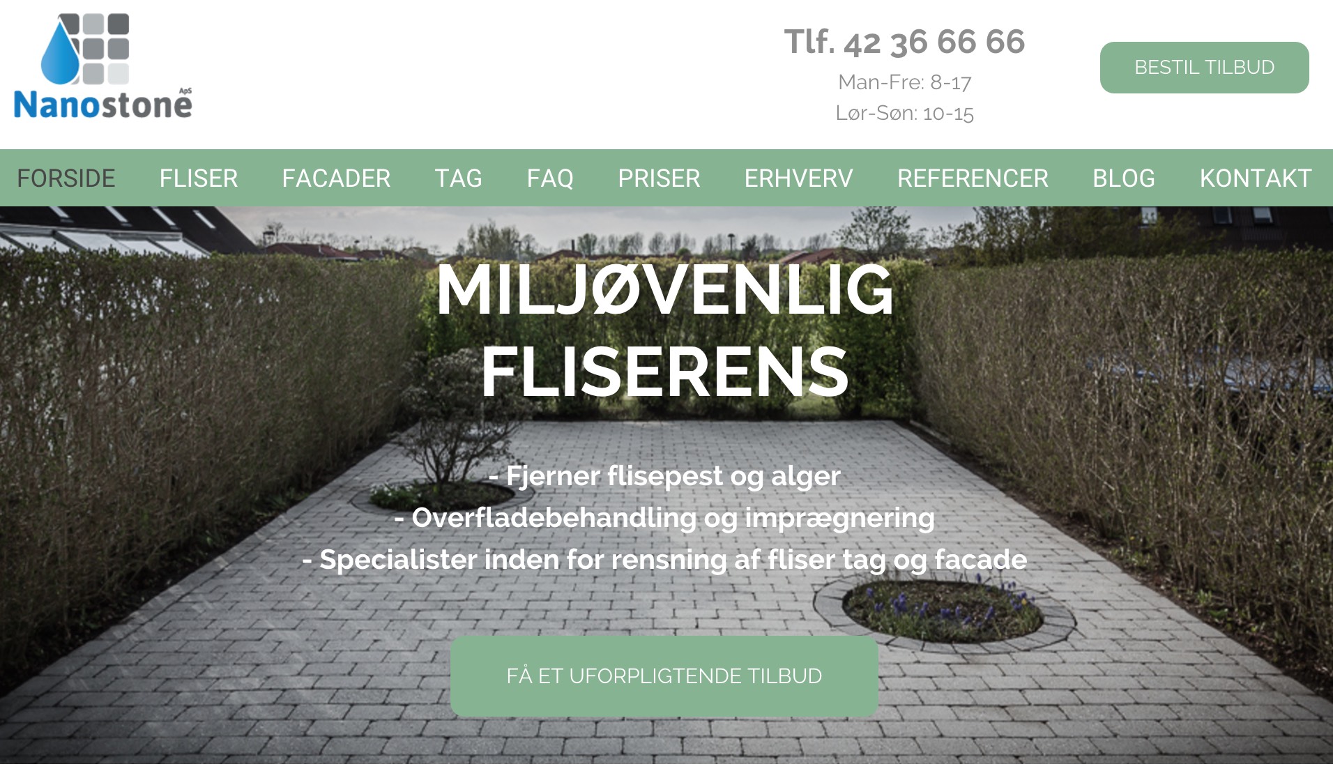 Kort om siden/virksomheden Nanostone Aps er firmaet som kan rense dine fliser for flisepest, alger, mos, eller andre uønskede belægninger. Nanostone er uden tvivl et top professionelt firma indenfor deres erhverv, hvilket deres hjemmeside hurtigt giver en indikation af. Nanostone bruger den nyeste teknologi på markedet, når de renser fliser, facader og tage – og ligeledes er de et af de førende virksomheder indenfor imprægnerin...